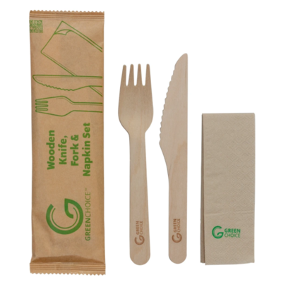 Green Choice wooden cutlery is made of 100% Birchwood.The Napkin is made of 2 ply food grade paper. As food contamination is not a problem, used cutlery can be sent to a landfill (to eventually breakdown into plant matter) or sent to a commercial composting centre (for conversion into compost).