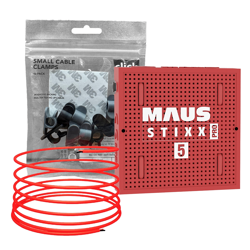 Mount & Secure: Fit the MAUS Stixx PRO 5 unit and route 4 m of HDC cable with 10 adhesive clips.